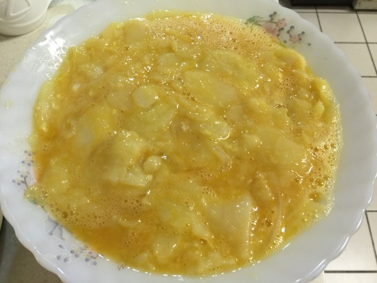 馬鈴薯泥片加入打散的蛋汁