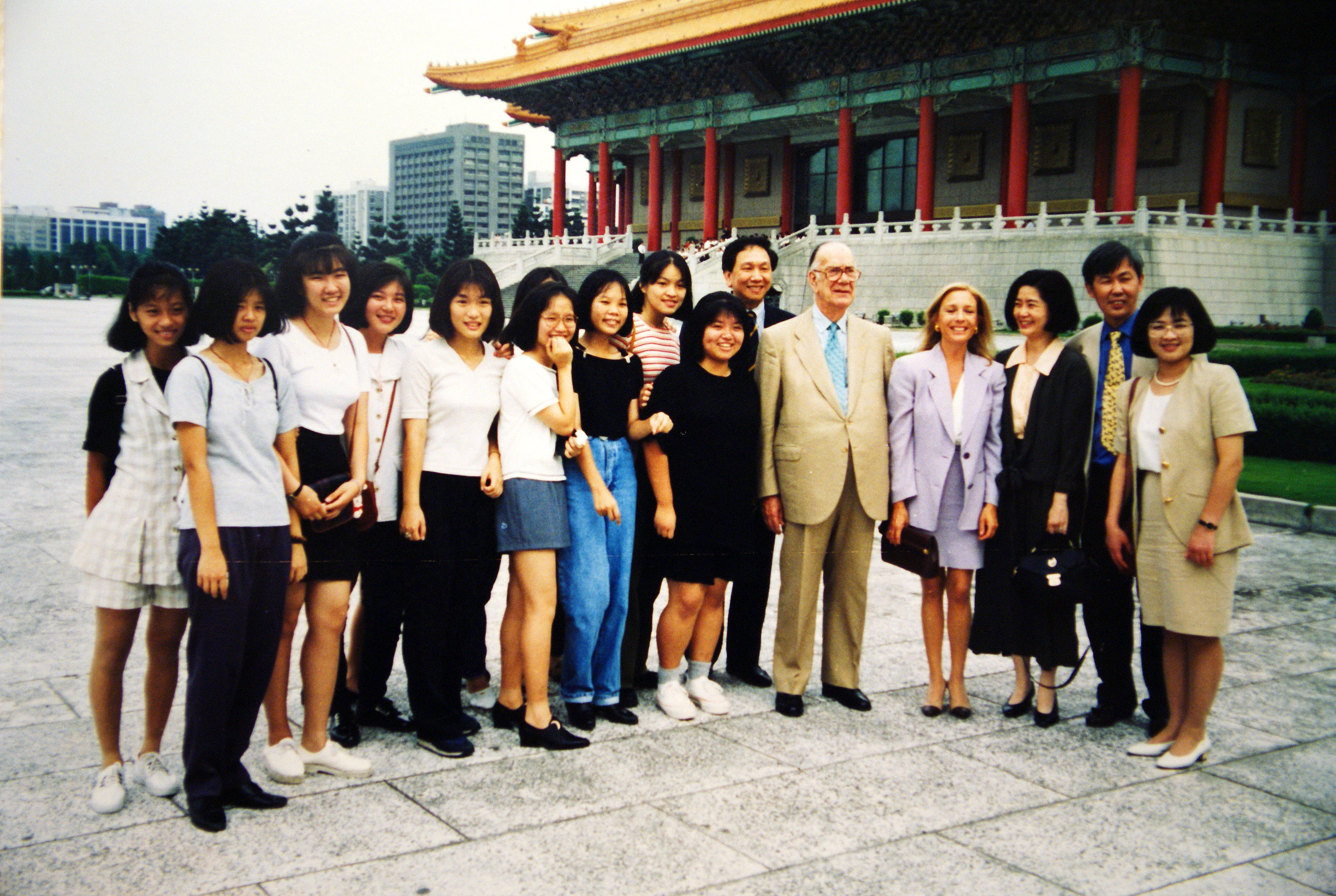 參觀中正紀念堂:南部某校學生畢旅,從電視報導得知塞拉訪臺,爭相合影。