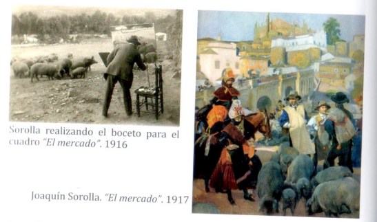 畫家 J. Sorolla 的〈市集〉草圖和畫作