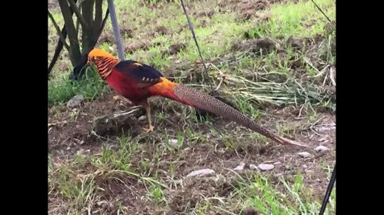 五彩艷雞漫步金桔下